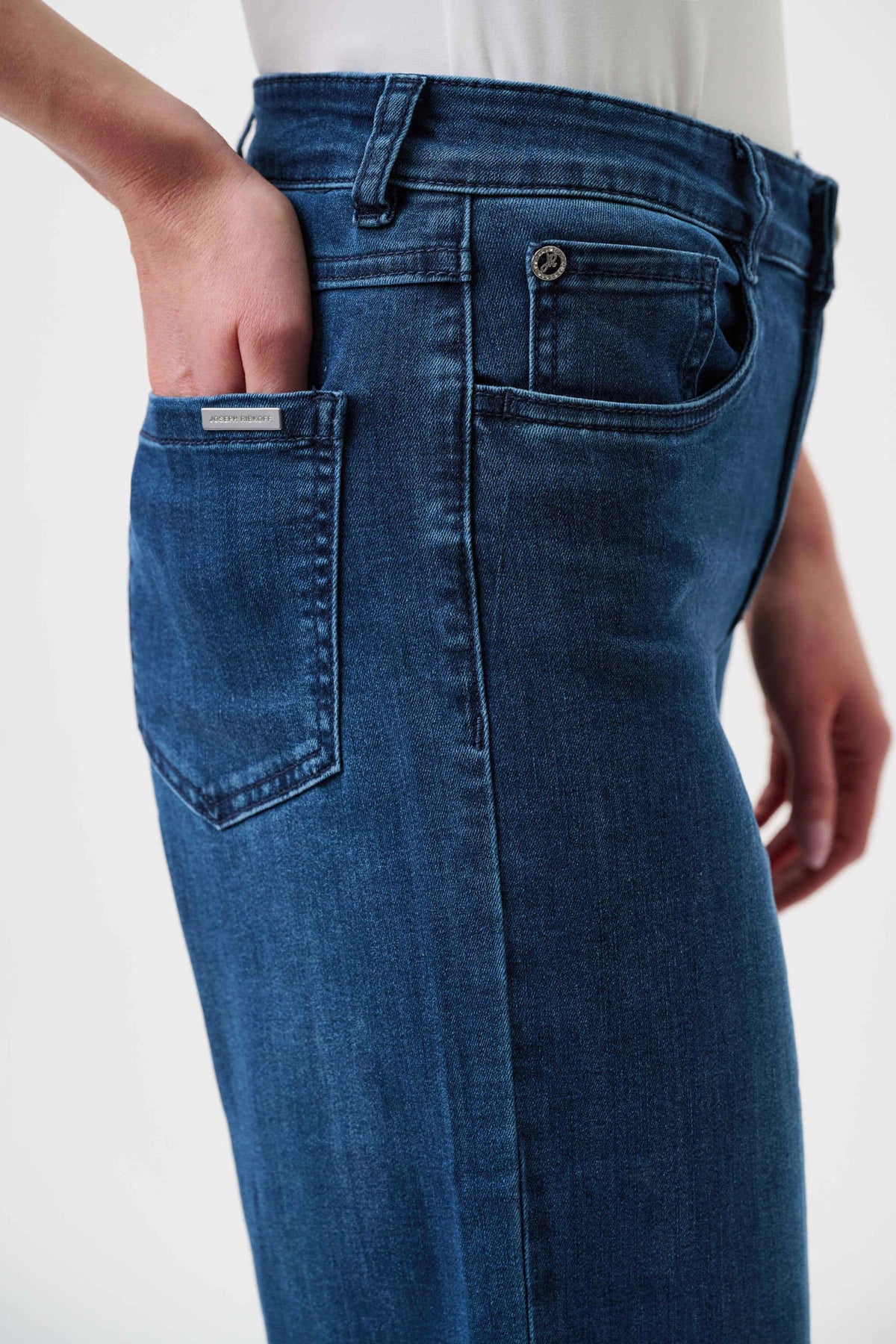 With a nod to 70s glamour, Goldie’s classic wide-leg exudes effortless confidence. A little bold, a little carefree this is denim is designed with a sweeping shape that adds a touch of drama. Crafted with Joseph Ribkoff Feather weave™ denim, you'll be owning this iconic style as well as relishing their perfect comfort. These jeans have a 32.5" inseam.