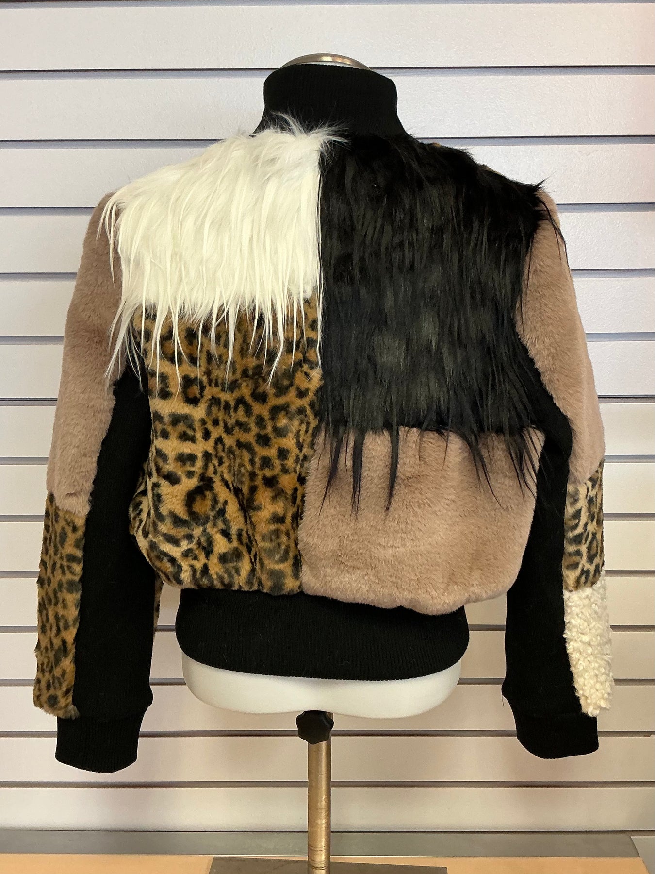 This Jade style bomber is made from a combo of super soft faux furs so you can look chic and stay cozy at the same time. Trimmed with a black ribbed cuffs and faux leather along the zipper, it has a cropped silhouette and signature Furious Fur zipper. Pair yours with a classic T-shirt and jeans for an effortless chic look.