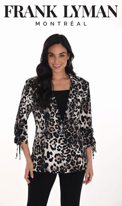 Frank Lyman - Beige and Blue Knit Graphic Long Sleeve