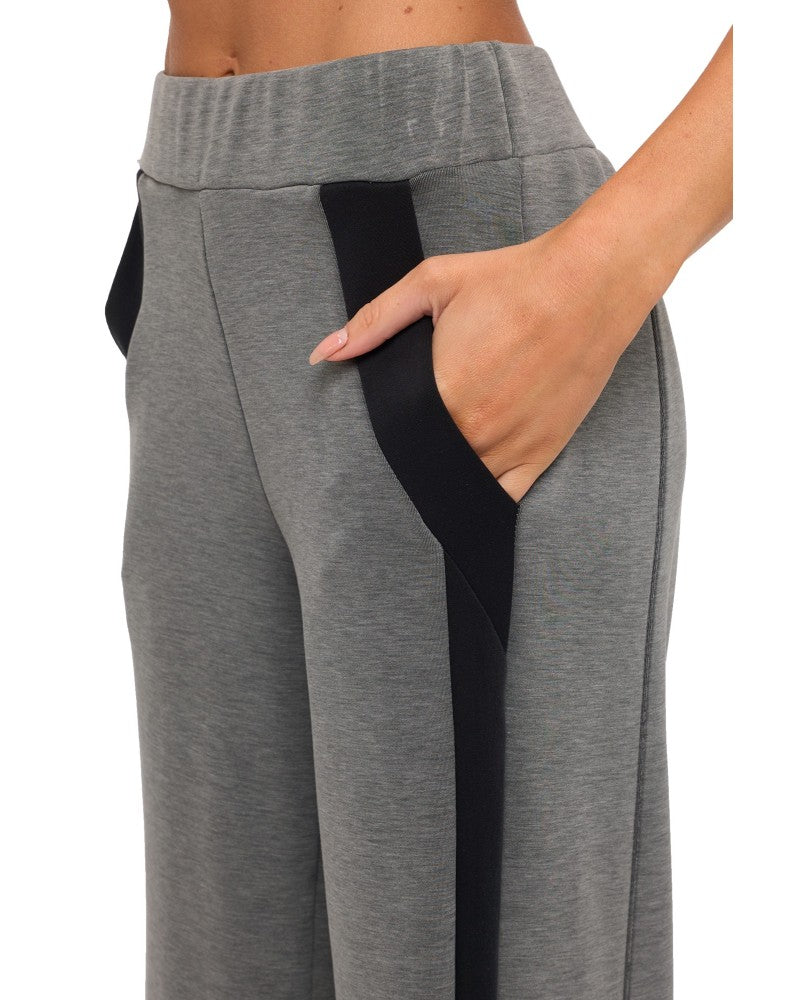 Gray and black wide leg color block pull on lounge pants from Ariella