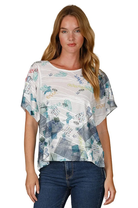Meet your new go-to casual essential! This wide cut short sleeve top brings effortless style with its boxy silhouette and playful equestrian-inspired graphics.