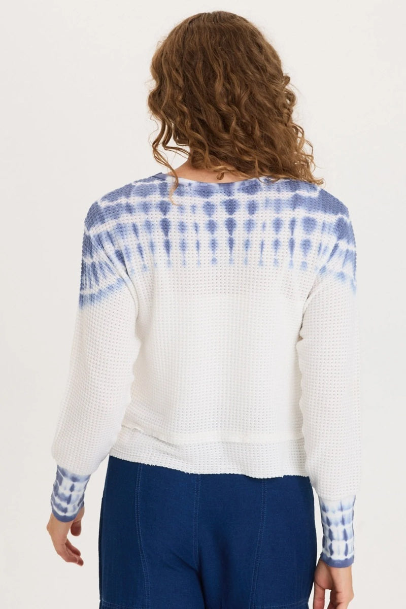 Our favorite thermal is back with a clean long sleeve style. This top features long rib cuffs with brass button hardware and a classic crew neck shape. The fun tie dye pattern adds whimsy to this everyday top.
