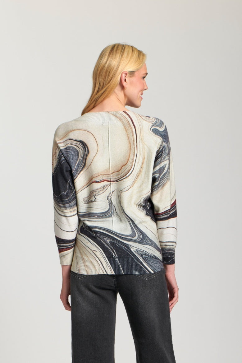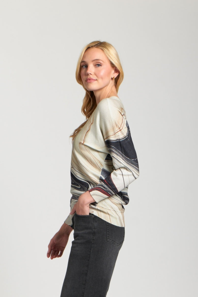 Add a a relaxed edge to your wardrobe with this printed V-neck dolman, designed for both comfort and style. Featuring a flattering V-neckline and a relaxed pullover silhouette, this top is perfect for everyday wear. The allover print brings a bold, artistic touch, while the long sleeves provide cozy coverage. Crafted from soft, breathable fabric and finished with a clean straight hemline, it pairs effortlessly with jeans or trousers for a casual-chic look.