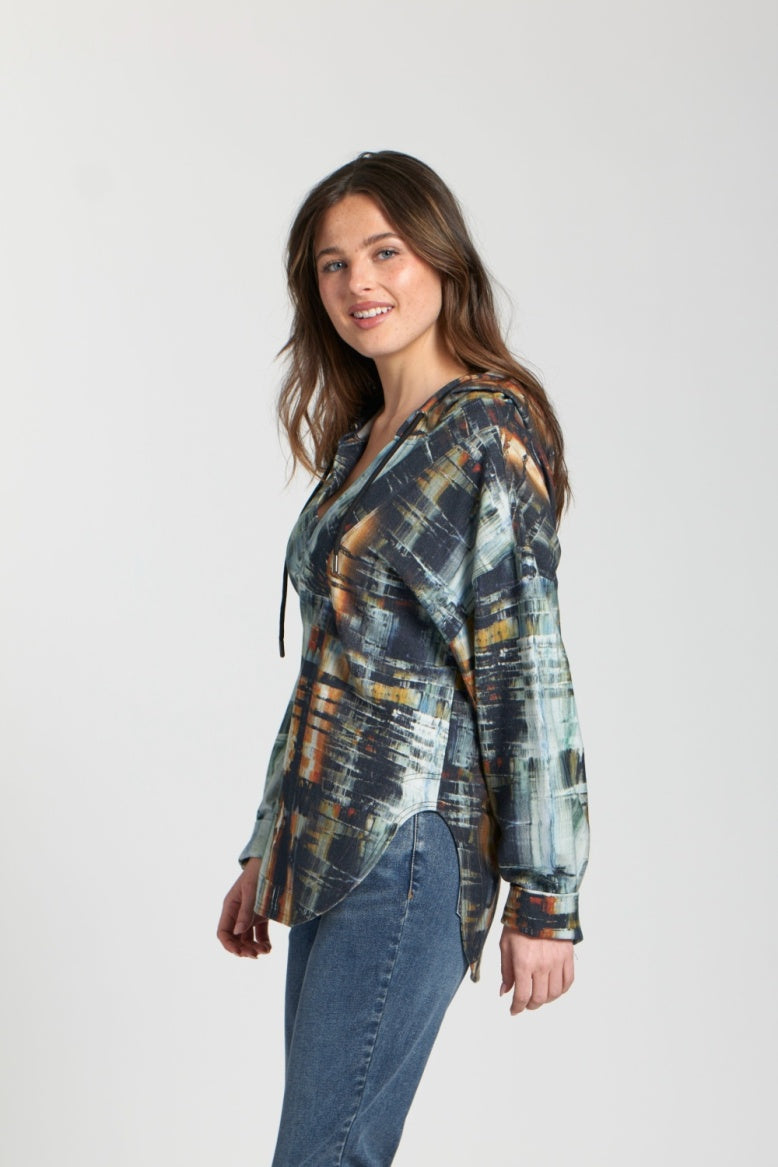 Brighten up your everyday look with this colorful pullover hooded top, designed for both comfort and style. It features a hooded collar for a relaxed, sporty vibe and a V-neckline with drawstring closure for adjustable comfort. The long sleeves offer full coverage with a casual, easy fit. Finished with a rounded high-low hemline, this pullover flatters the silhouette and adds a modern touch. Perfect for layering or wearing on its own, it’s a go-to piece for effortless, all-day wear.
