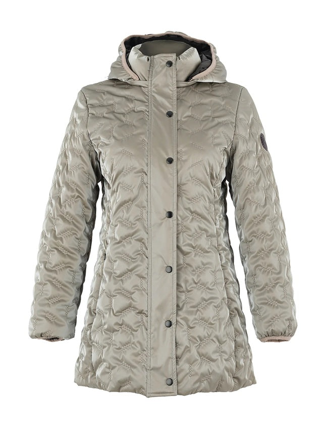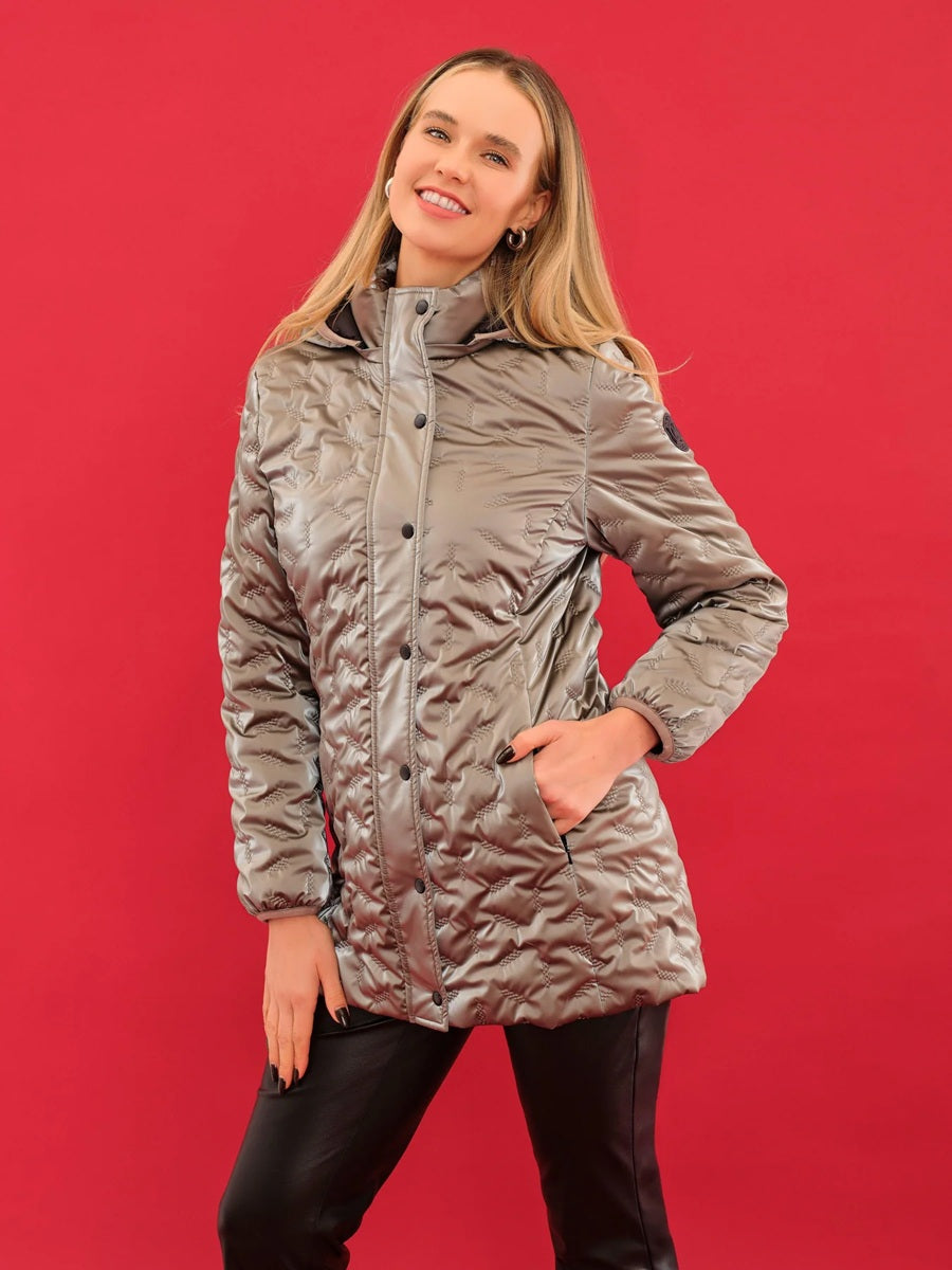 Stay warm without sacrificing style in this quilted longline jacket. Designed with a sleek silhouette, it features a cozy high collar, detachable hood, and lightweight padding for all-day comfort. The subtle textured quilting adds a modern touch, while front pockets keep your essentials close at hand. Perfect for layering over casual or dressy looks, this jacket is a versatile outerwear piece you’ll reach for all season long.