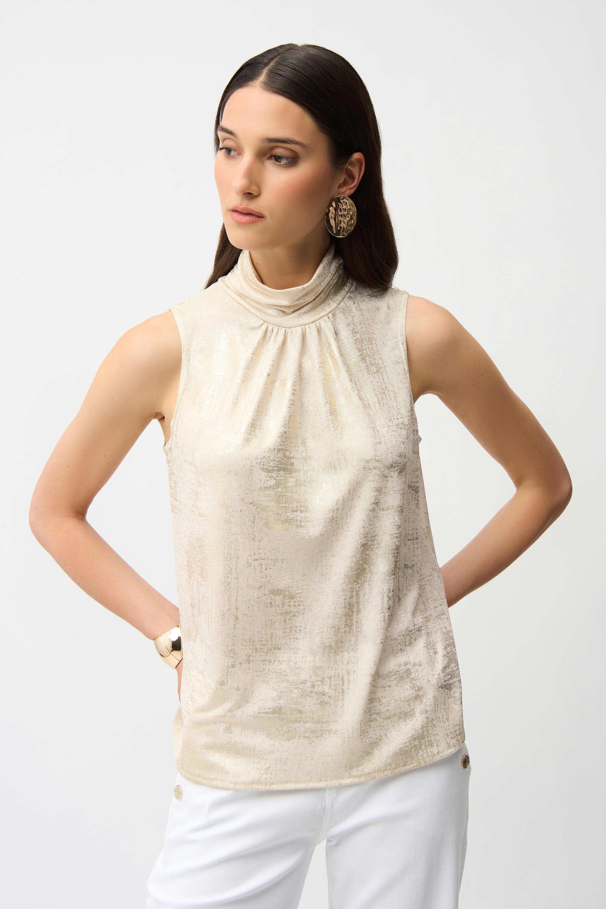 Joseph Ribkoff - Ivory and Gold Sleeveless Mock Neck