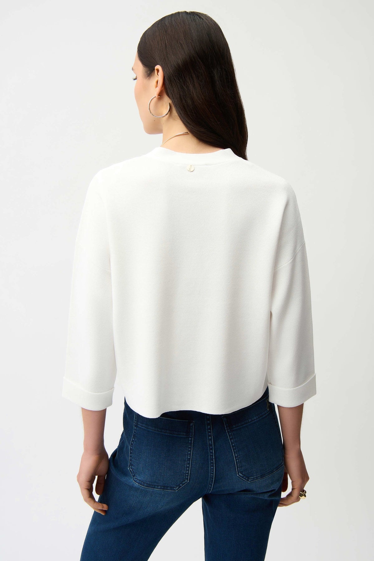 Crafted from dry viscose and nylon, this relaxed-fit cardigan features a V-neckline, dropped shoulders, and three-quarter sleeves. Faux pocket flaps at the yoke and gold buttons and matching mirrored press-on trims add a luxurious touch to this piece.