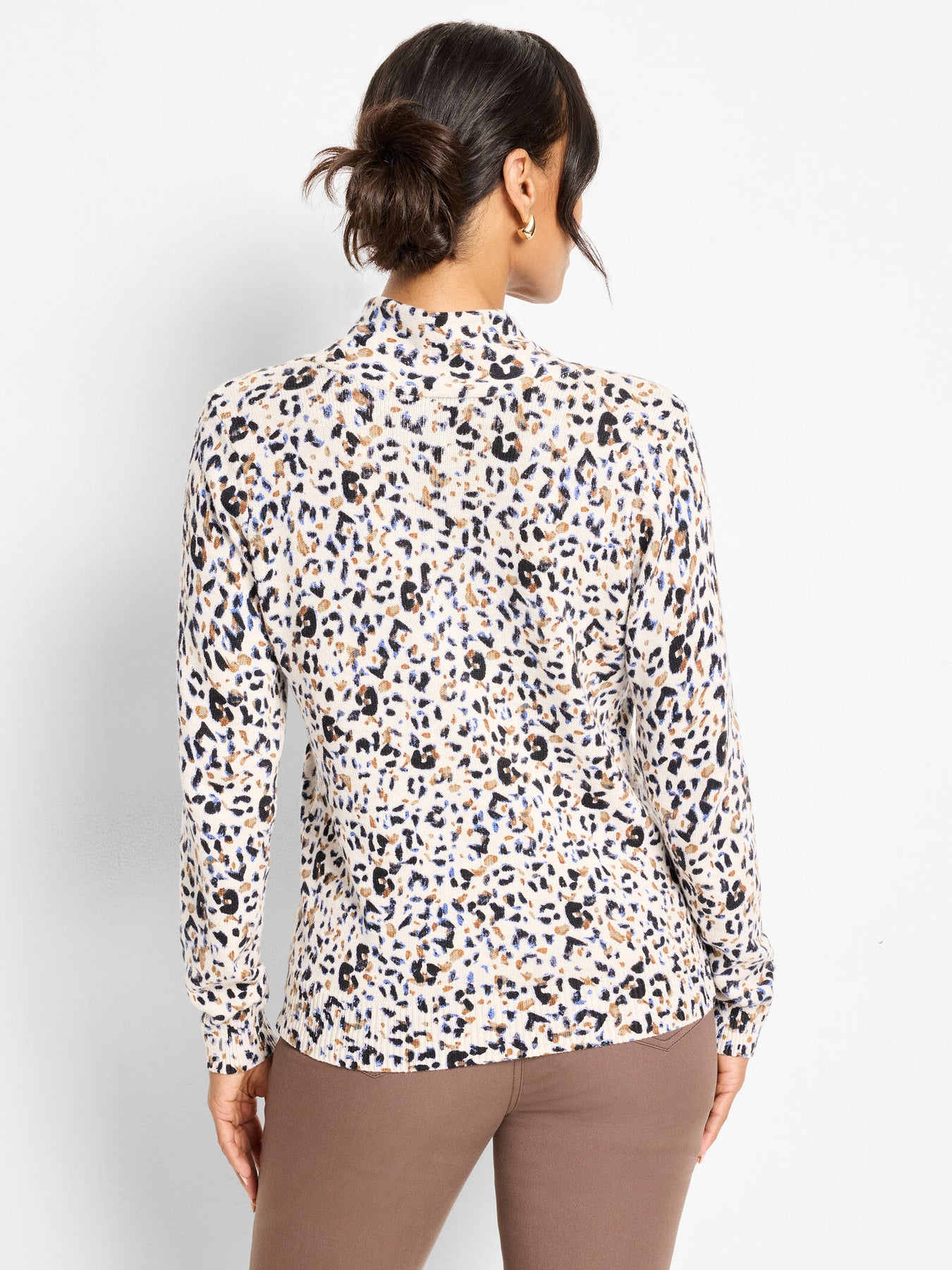 A light and airy modern cheetah print in an effortless knit: the perfect switch-up to your standard sweater. Featuring a built up neckline that dives into a classic V-neck, perfect for layering. This polished sweater is ready for work and nights out, but it's so comfy that you might just be wearing it on the weekends too.